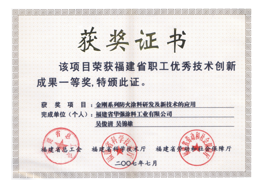 2007年榮獲福建省職工優(yōu)秀技術(shù)創(chuàng)新成果一等獎(jiǎng)