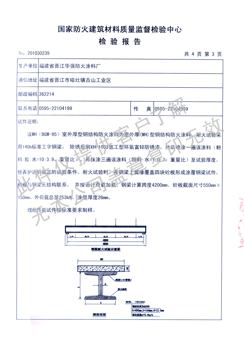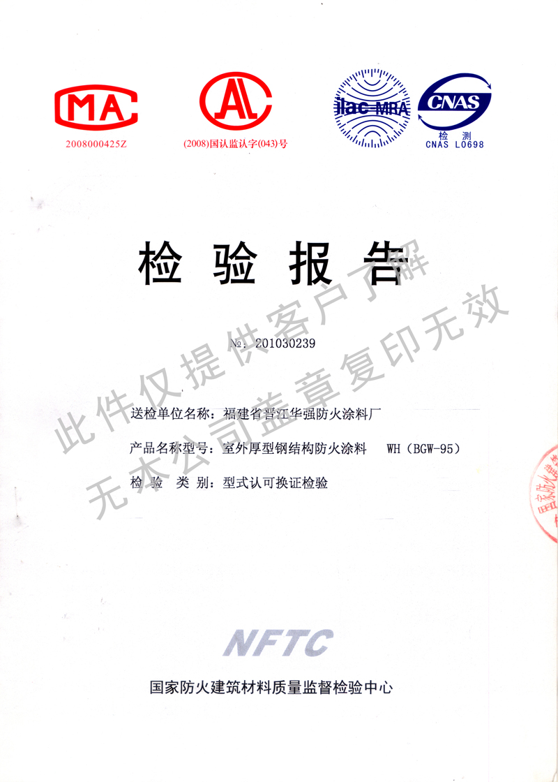 國家防火建筑材料質(zhì)量檢驗檢測中心檢測通過的《檢驗報告》